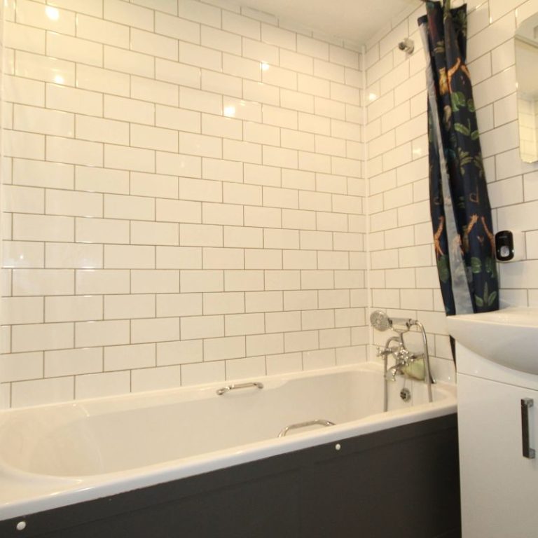 Bathroom: Tiled walls complementing suite comprising low level W/C, vanity wash hand basin, panelled bath with mixer tap over, radiator.