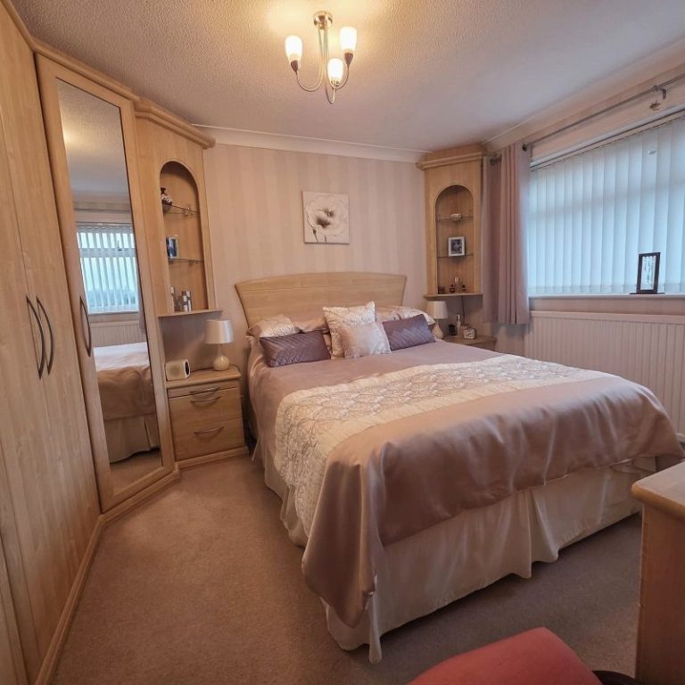 Bedroom One 11′ x 9’9 (3.35m x 3.01m): Windows to front elevation, radiator, ample fitted wardrobes and draws.