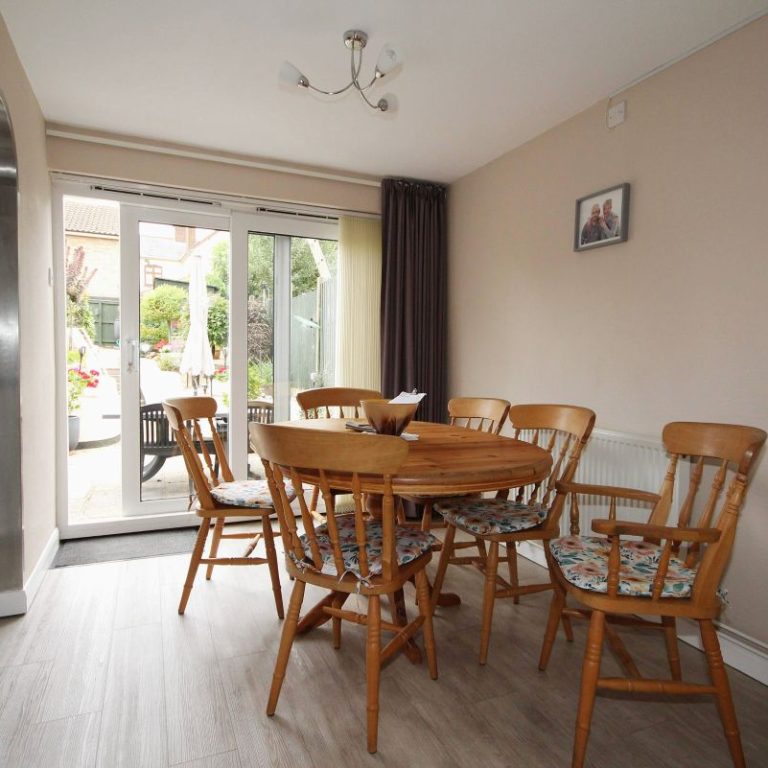 Dining Room: 10’7 x 7’9 (3.23m x 2.38m): Sliding patio doors to rear garden, radiator, archway through to: