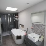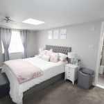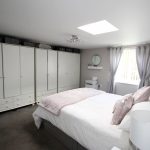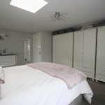 Bedroom One 14’8 x 12’6 (4.51m x 3.84m): UPVC double glazed window to rear elevation, skylight, radiator, door to: