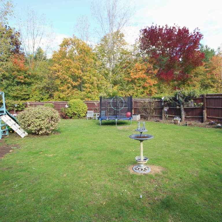 Rear garden: Side pedestrian access leading to a generous, unoverlooked rear garden with paved patio area with timber-built summer house, extensive lawns surrounding flower and shrub borders and a further paved seating area. Outside water tap and courtesy light. Backing onto parklands with mature trees.