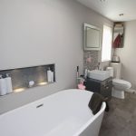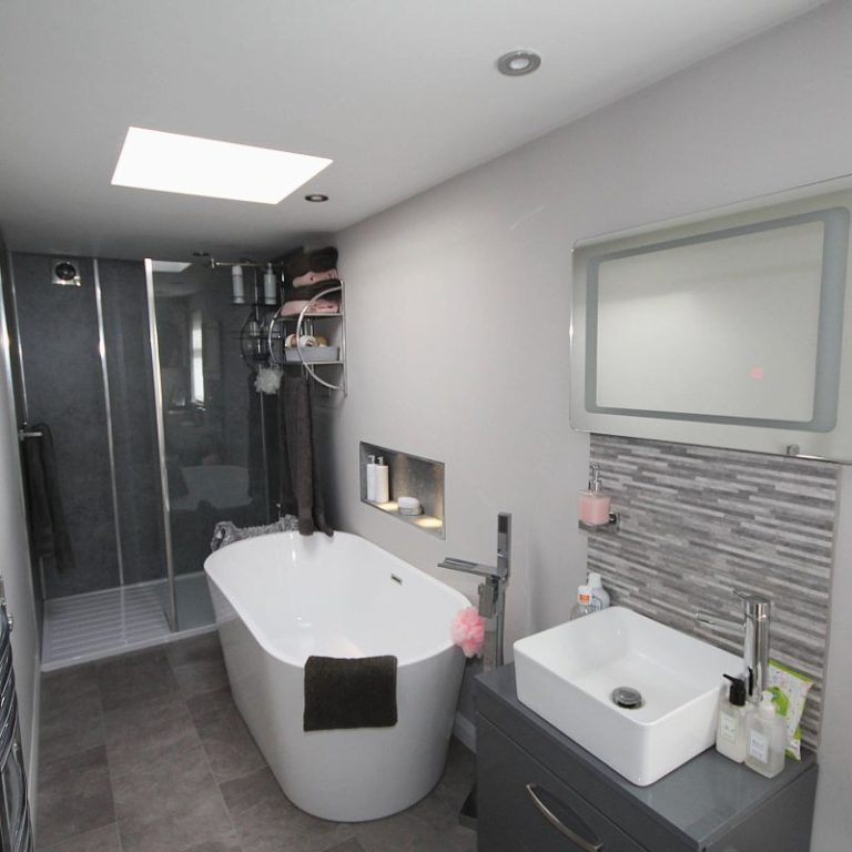 En-Suite 15’1 x 4’6 (4.6m x 1.4m): UPVC double glazed window to side elevation, with free standing bath and separate shower cubicle, low level WC, with countertop wash hand basin.