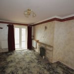 Lounge 18′ x 10’6 > 9’1 (5.49m x 3.23m > 2.77m): Window to front elevation, French doors to conservatory, three radiators, fireplace.