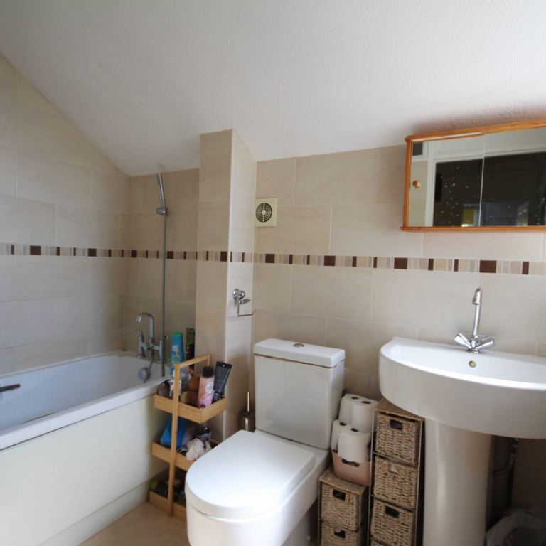 Bedroom Three 9’4 x 7’10 (2.84m x 2.39m): Double glazed window to rear elevation, radiator, built in storage cupboard housing gas fired boiler serving domestic hot water and central heating system.
