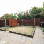 Unoverlooked rear garden, which is mainly laid to lawn, with paved patio area, timber built shed and gated rear pedestrian access.