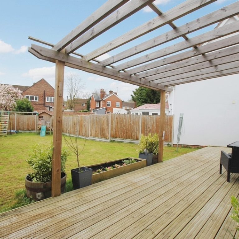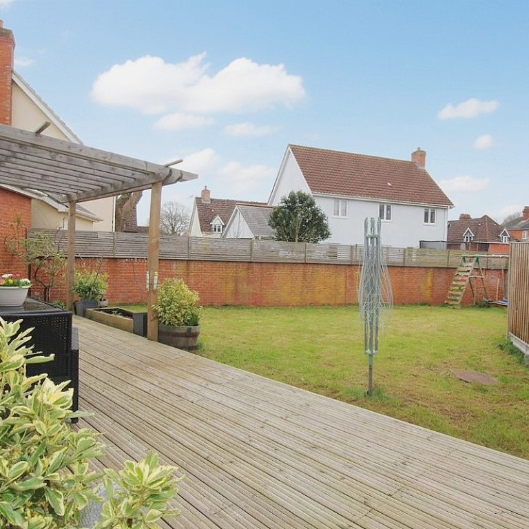 The Rear Garden is enclosed to boundaries mainly laid to lawn with timber decking and pergola over, and personal door to single garage with up and over door with light and power connected.
