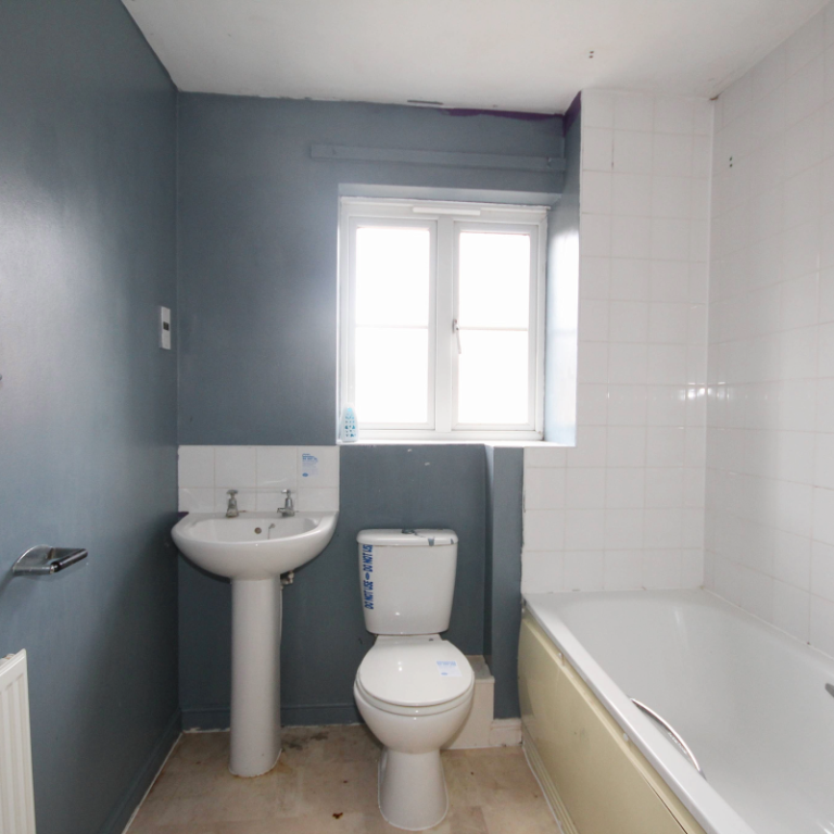 Family Bathroom: Obscure UPVC double glazing window to side elevation, part tiled walls, suite comprising low level wc, pedestal wash hand basin, panelled bath with electric shower over, radiator.